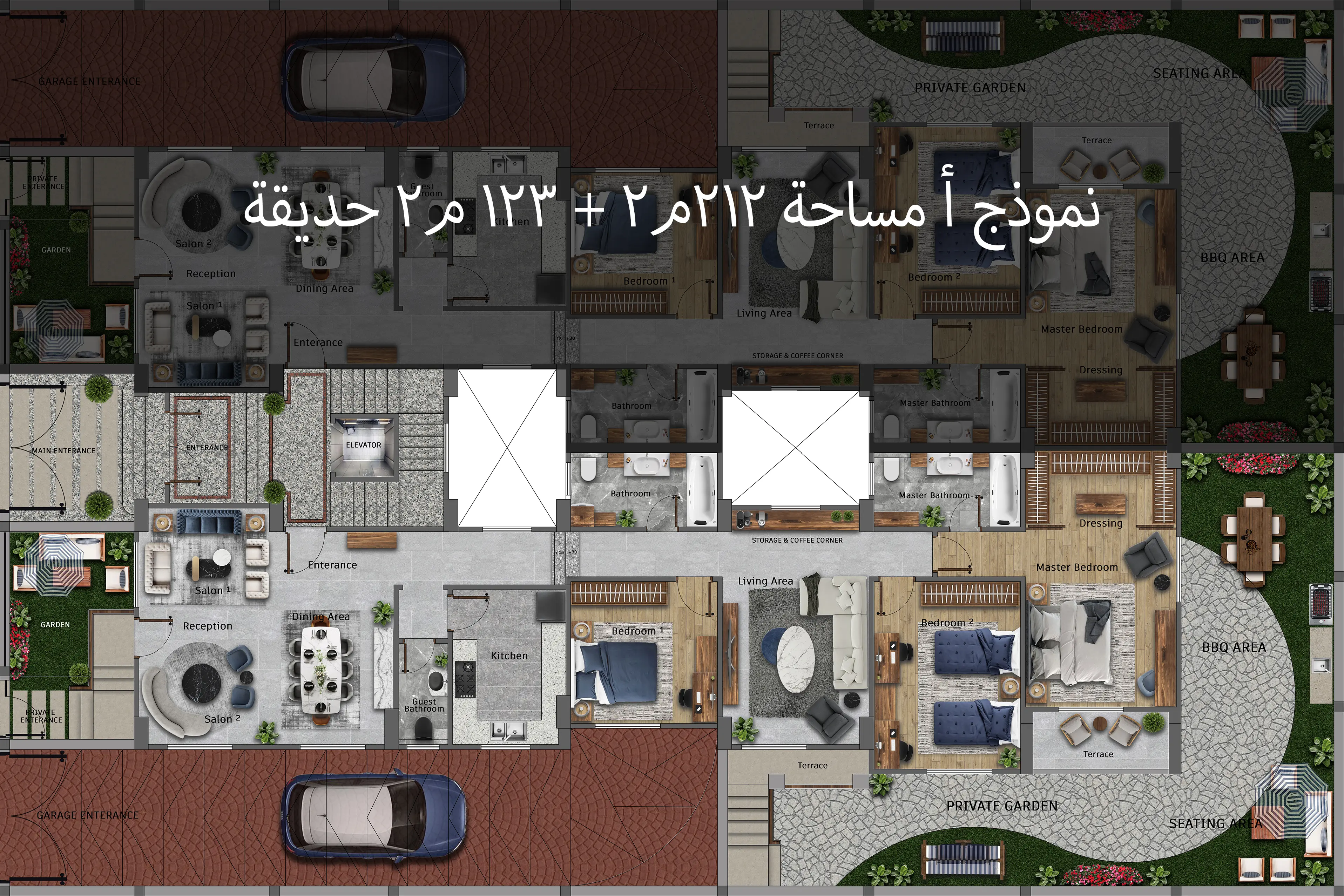 مساحة ٢١٢ م٢ + ١٢٣ م٢ حديقة