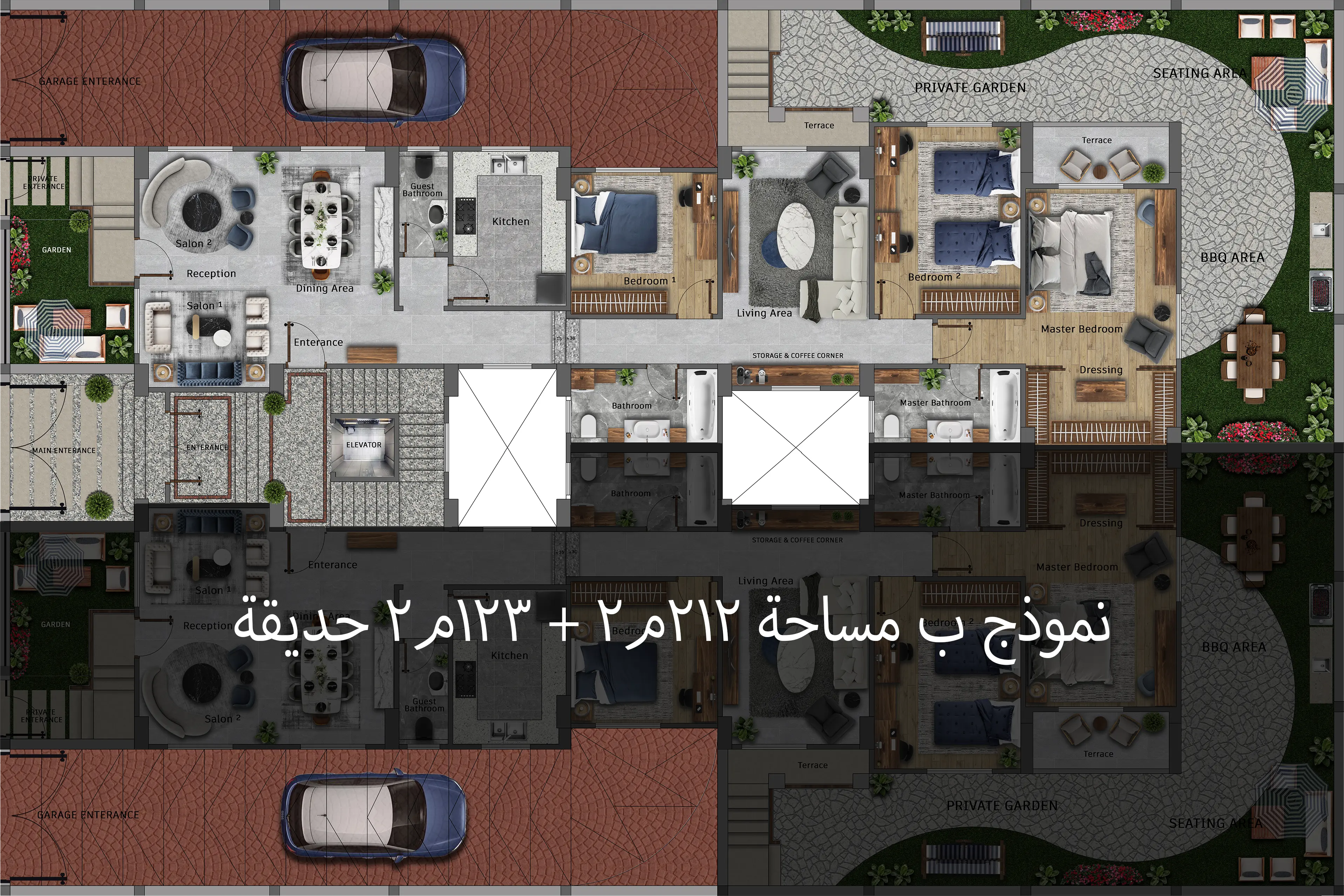 مساحة ٢١٢ م٢ + ١٢٣ م٢ حديقة